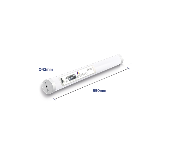 Die HeliosTube bringt die gleichen Funktionen und die selbe Power wie sein großer Bruder TitanTube mit. Auch er ist optimiert für außergewöhnlich hohe TLCI- und CRI-Werte, sowie extreme Helligkeit. Farbtemperatur, Sättigung und Intensität können mittels Display direkt an der Lampe eingestellt werden. Zusätzlich zum kabellosen Betrieb über Akku und App funktioniert die Strom- und Datenversorgung der Tubes auch mit einem einzigen Kabel (für längerfristige Produktionen & Festverkabelung).