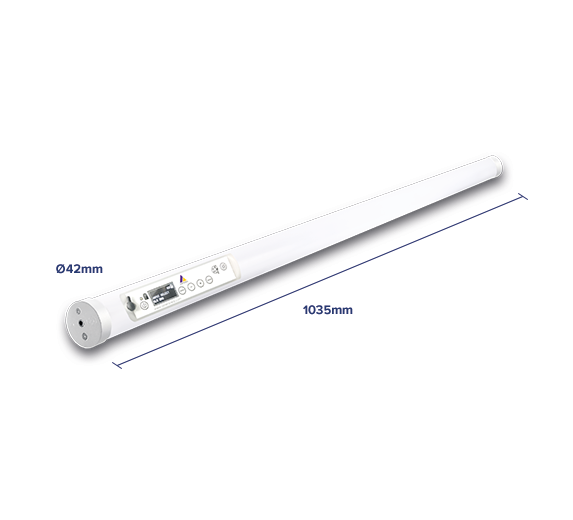 Der TitanTube ist konzipiert und designed für die Filmbranche. Neben der Optimierung für außergewöhnlich hohe TLCI- und CRI-Werte, sowie extreme Helligkeit können Farbtemperatur, Sättigung und Intensität mittels Display direkt an der Lampe eingestellt werden. Der TitanTUBE kann kabellos über Akku und App betrieben werden und bei längerfristigen Produktionen und Festverkabelungen funktioniert die Strom- und Datenversorgung zusätzlich mit einem einzigen Kabel.