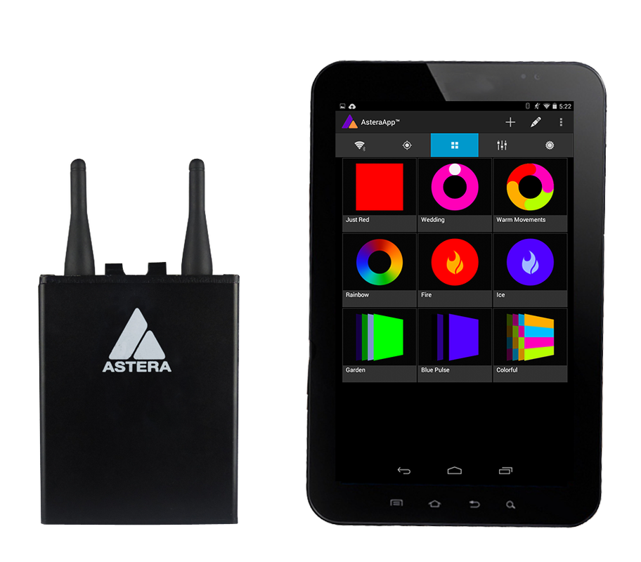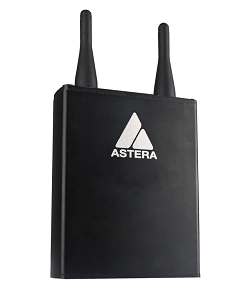 Die AsteraBox ist die Schnittstelle zwischen den Lampen und der Steuerung. Sie kann als Funk-DMX-Sender mit CRMXTechnologie eingesetzt werden und fungiert als Verbindung zwischen AsteraApp und den Lampen. Der eingebaute Akku ermöglicht eine einfache und zeitsparende Einrichtung, genau wie bei allen Astera-Produkten.