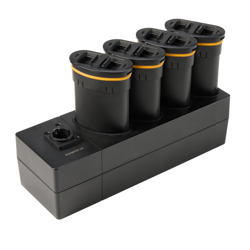 Laden Sie bis zu vier QuikBrick-Akkus gleichzeitig mit dem speziell dafür entwickelten ChargingDock.